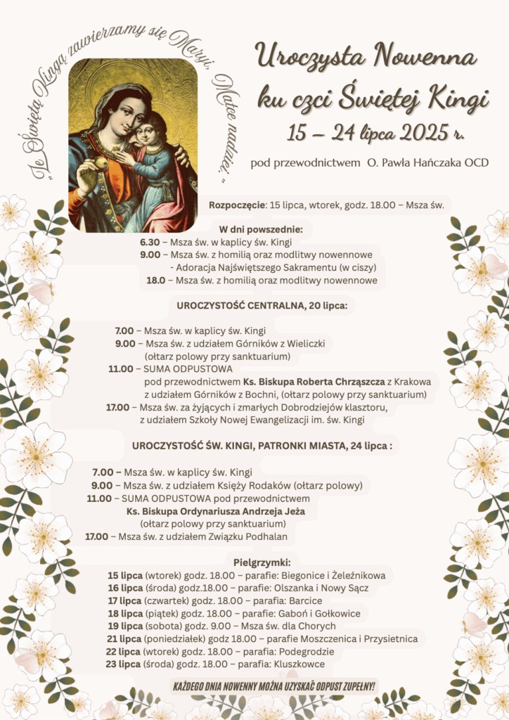 PROGRAM UROCZYSTOŚCI ODPUSTOWYCH KU CZCI ŚW. KINGI